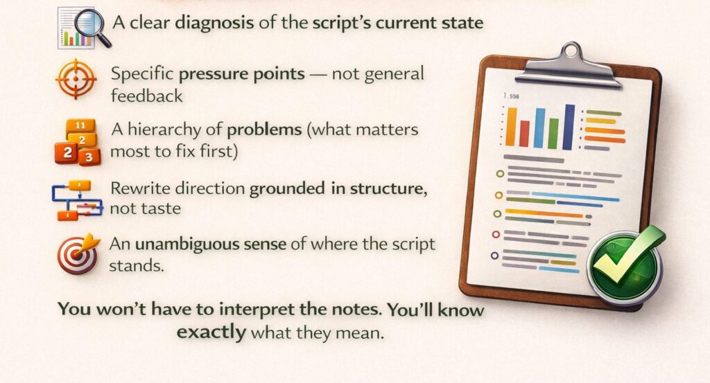 Script coverage at Blunt Pencil Storyworks is not a reaction. It is an examination.