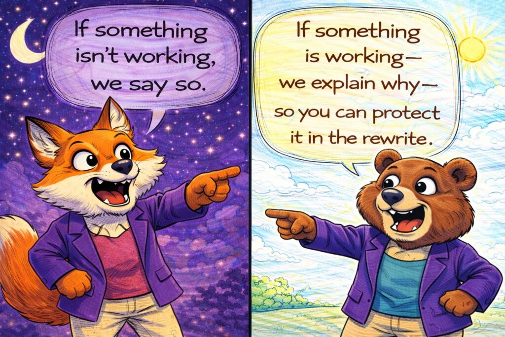 If a note can’t lead to a rewrite decision, it doesn’t belong in the report.